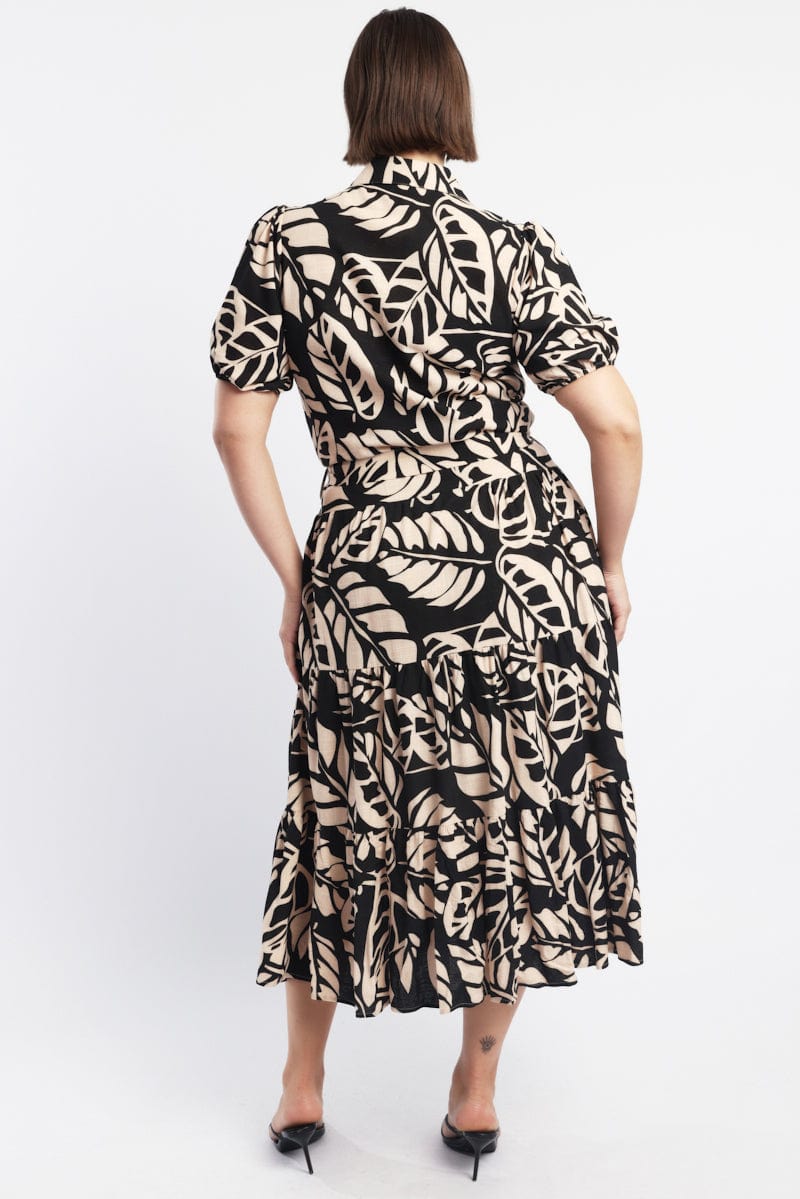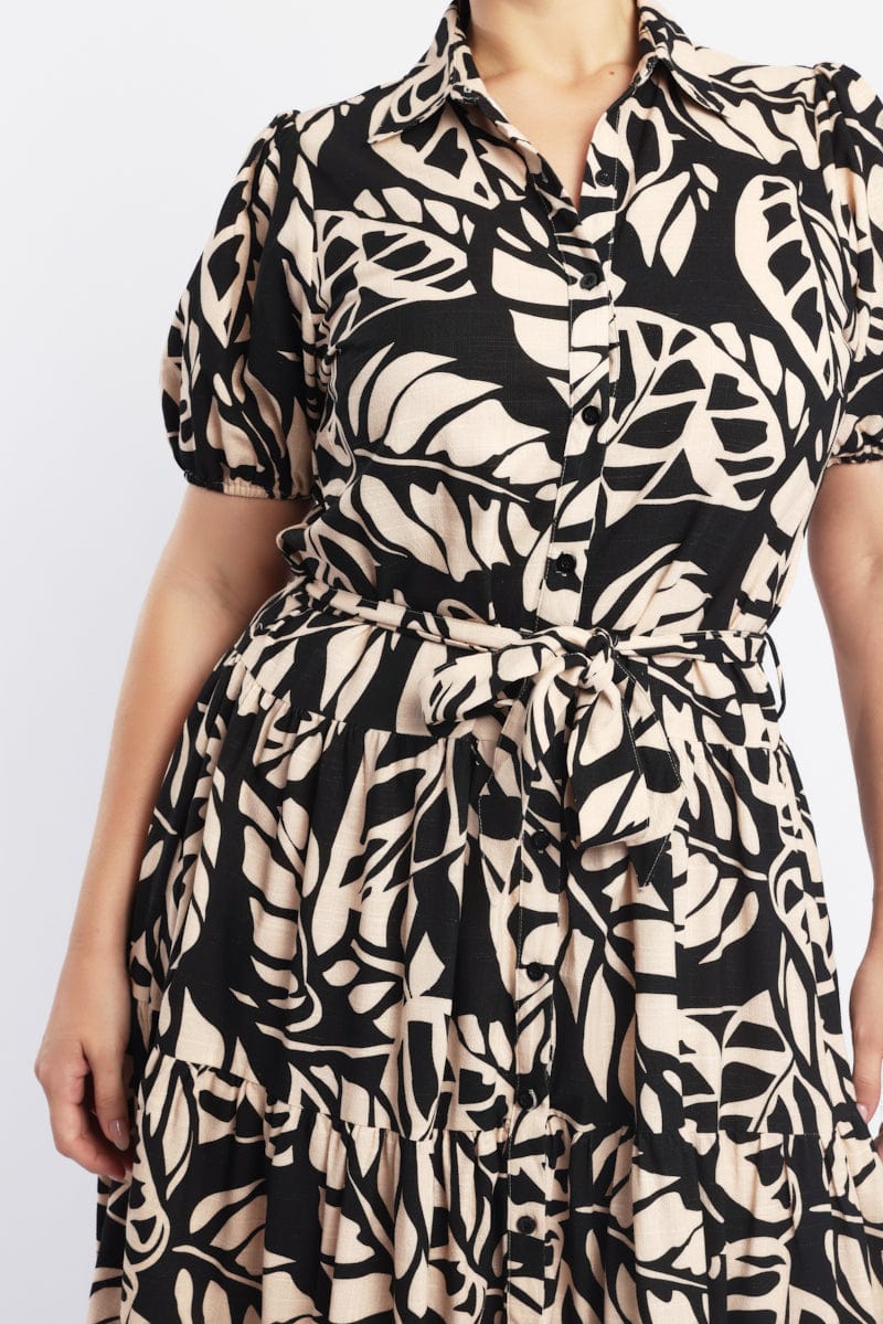 Black Floral Midi Dress Short Sleeve Shirt Floral