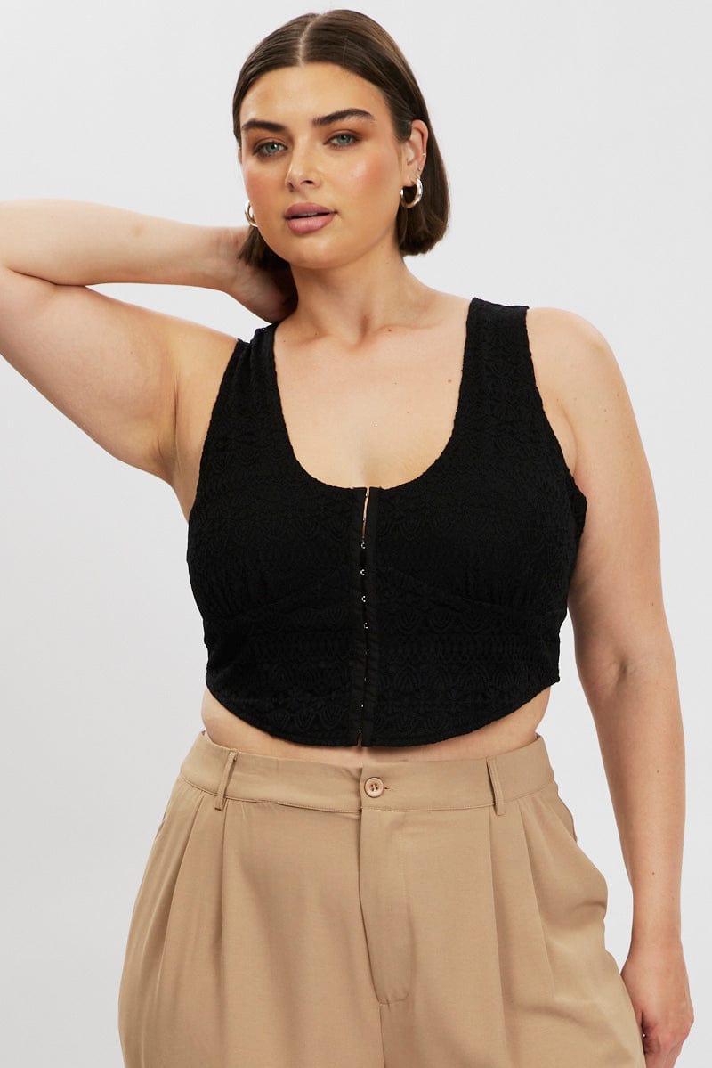 - Lace, Hook & Eye Front Closure, Curved Hem, Lined