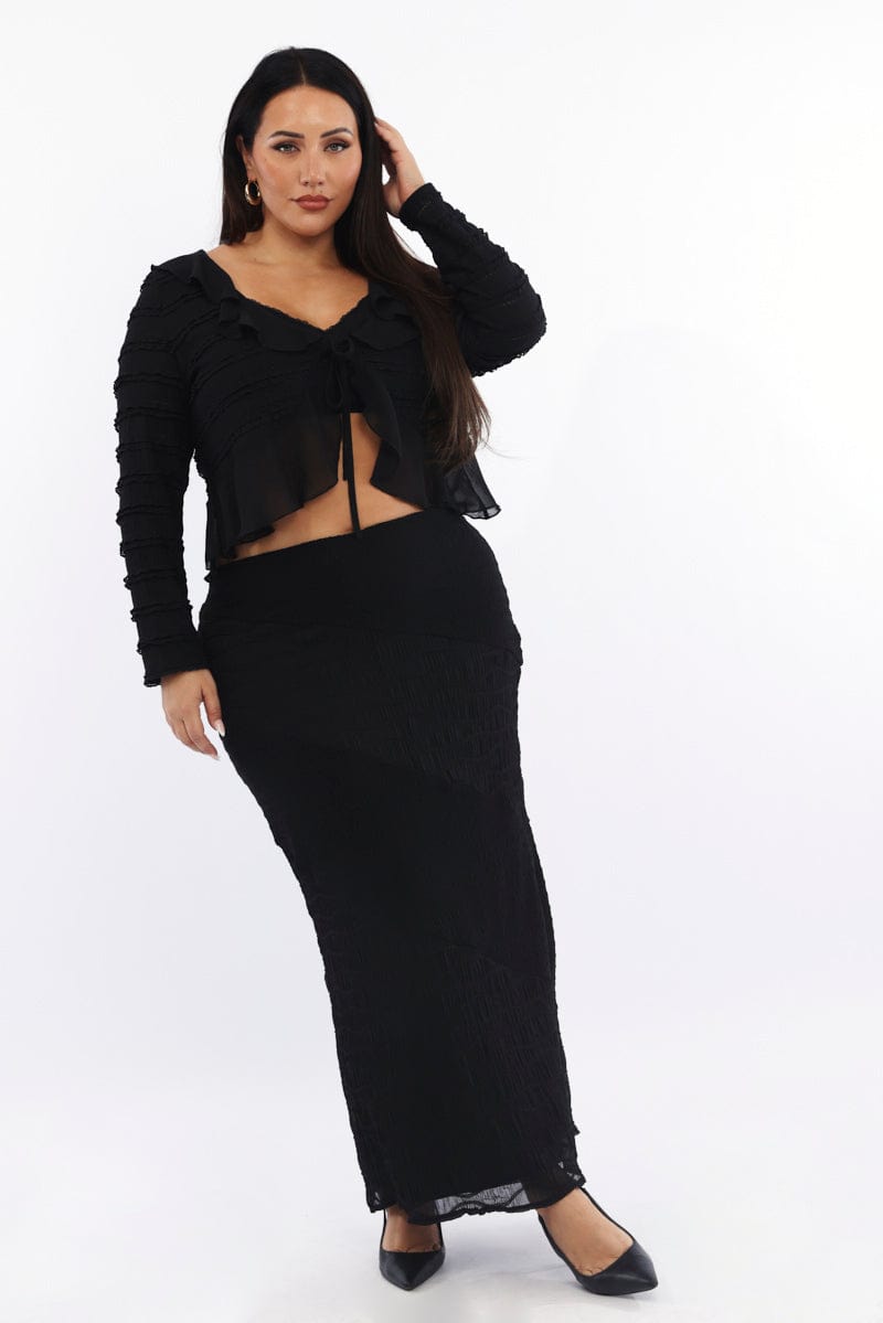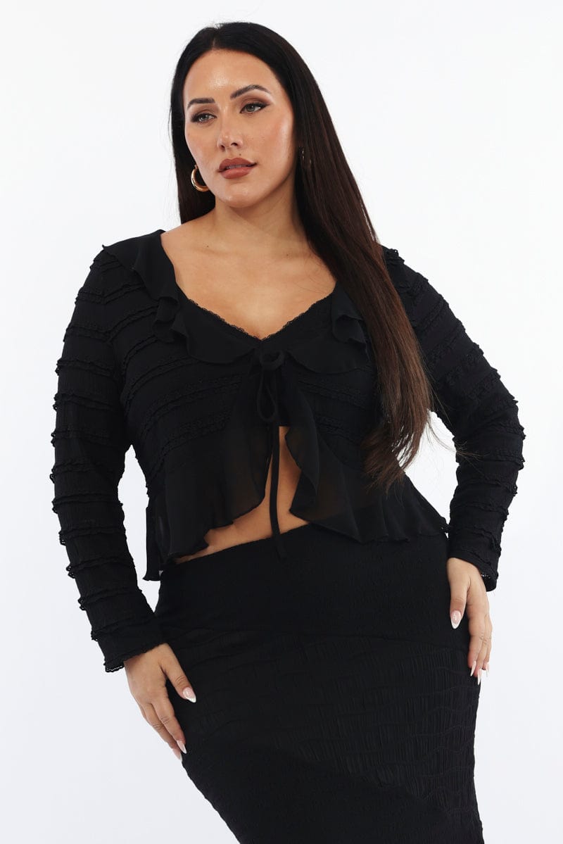 - Textured, Ruffle Trim, Tie-Up Front, Lined