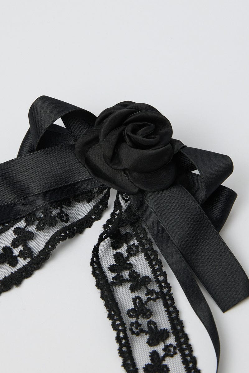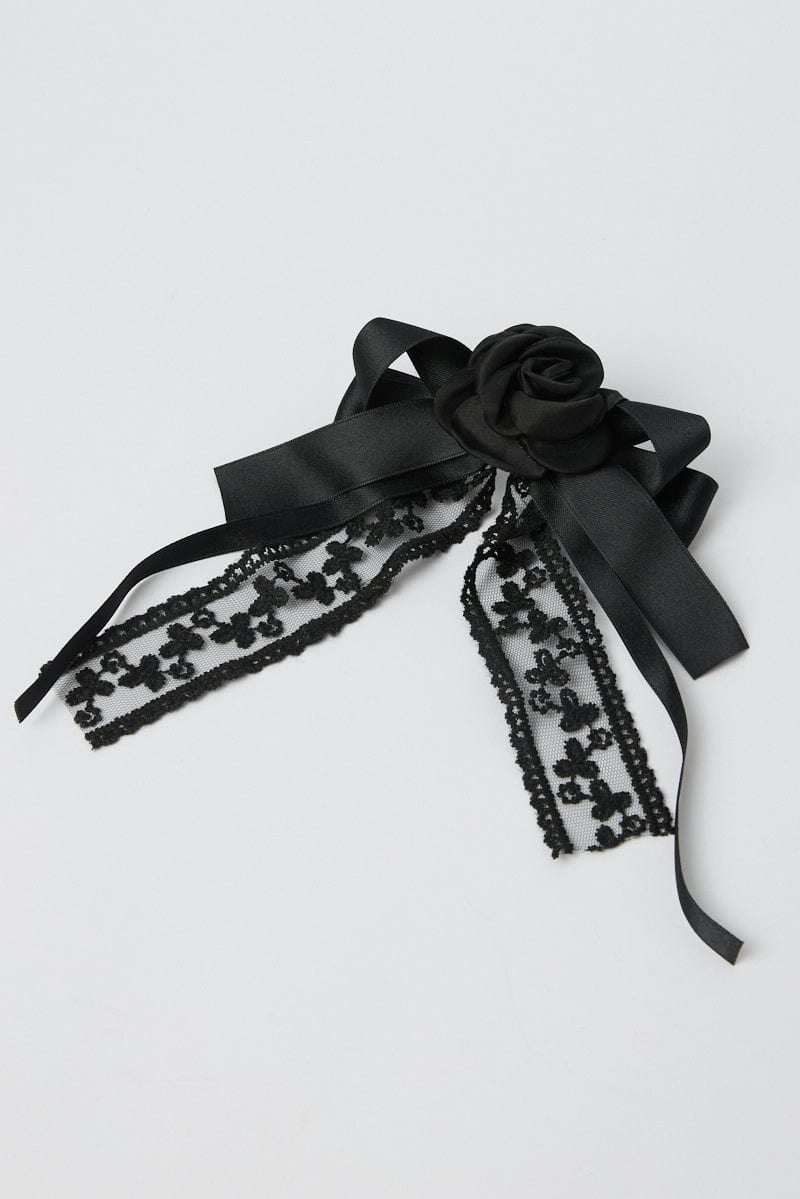 Black Lace Rosette Bow Hair Clip