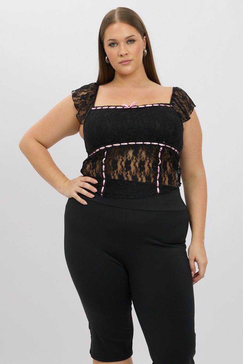 - Bust Lining, Lace Overlay, Contrast Ribbon Stich, Sheer