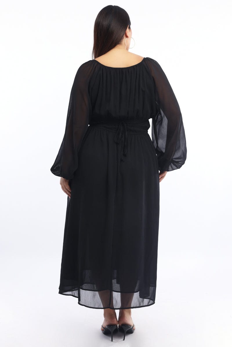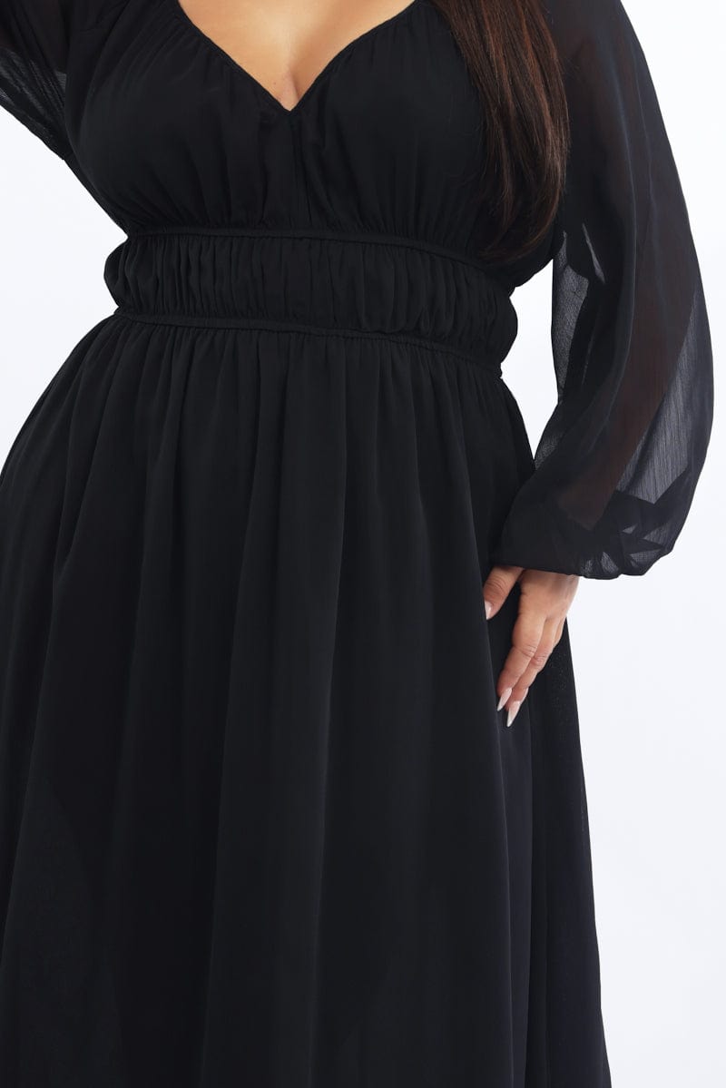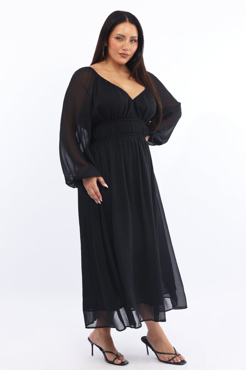 Black Midi Dress Long Sleeve Chiffon