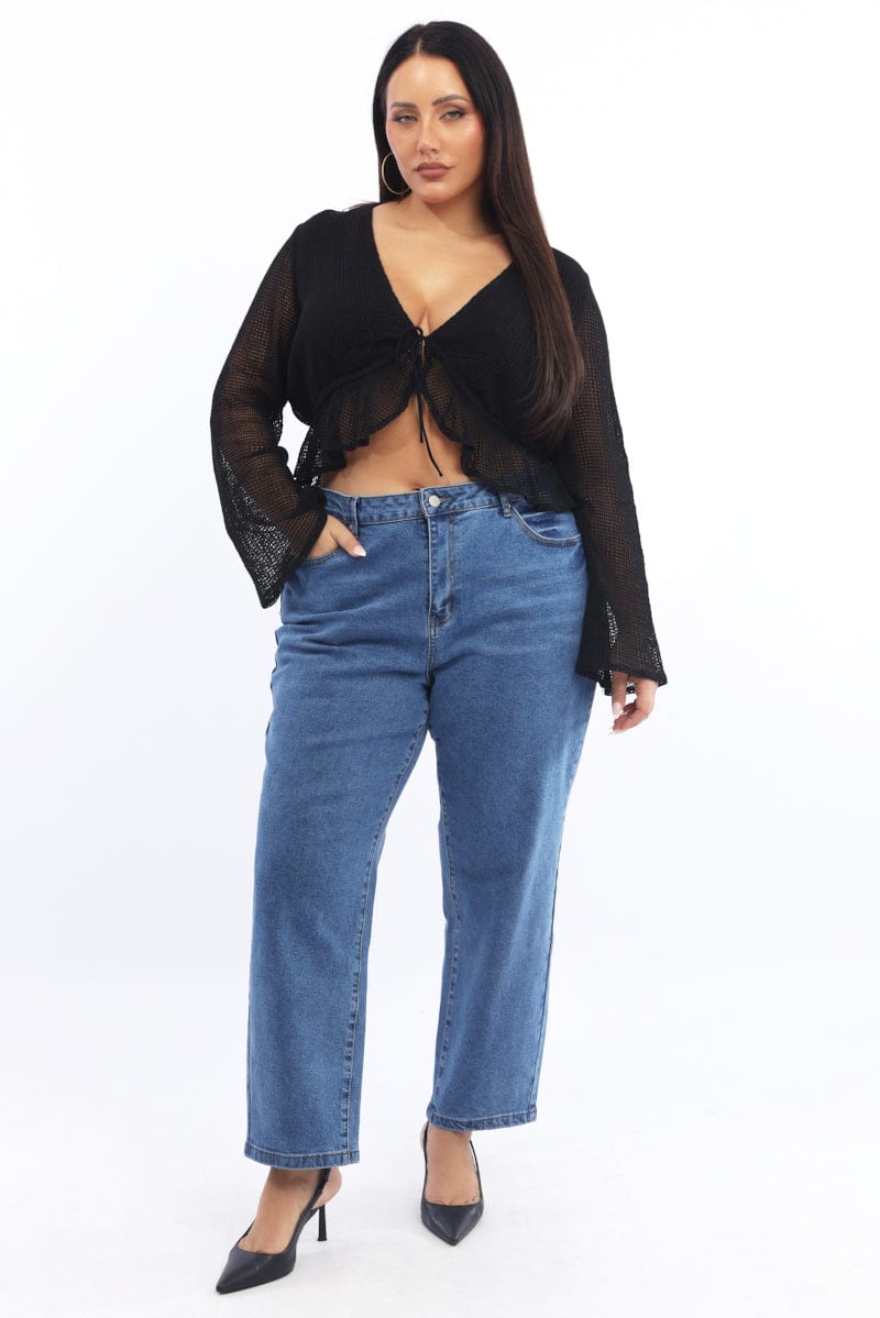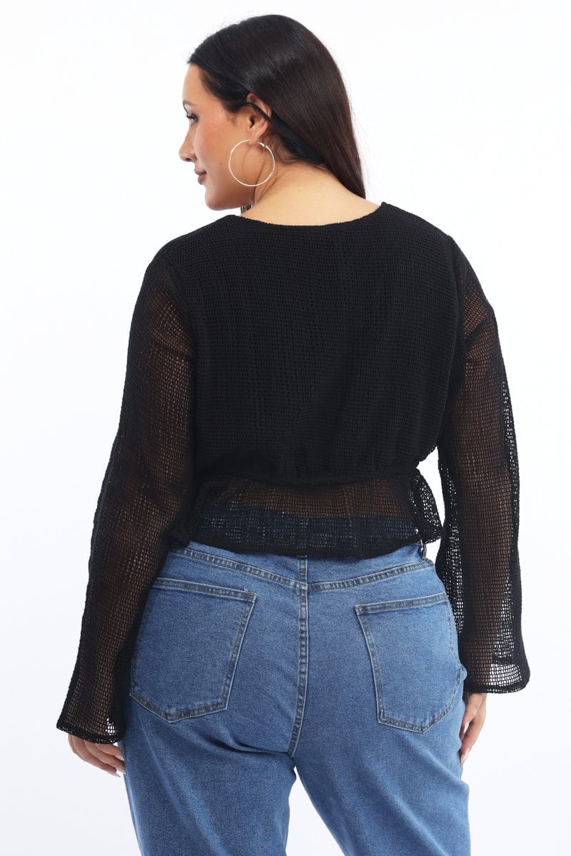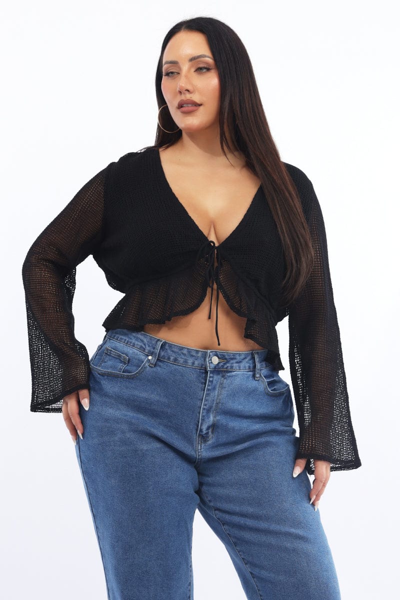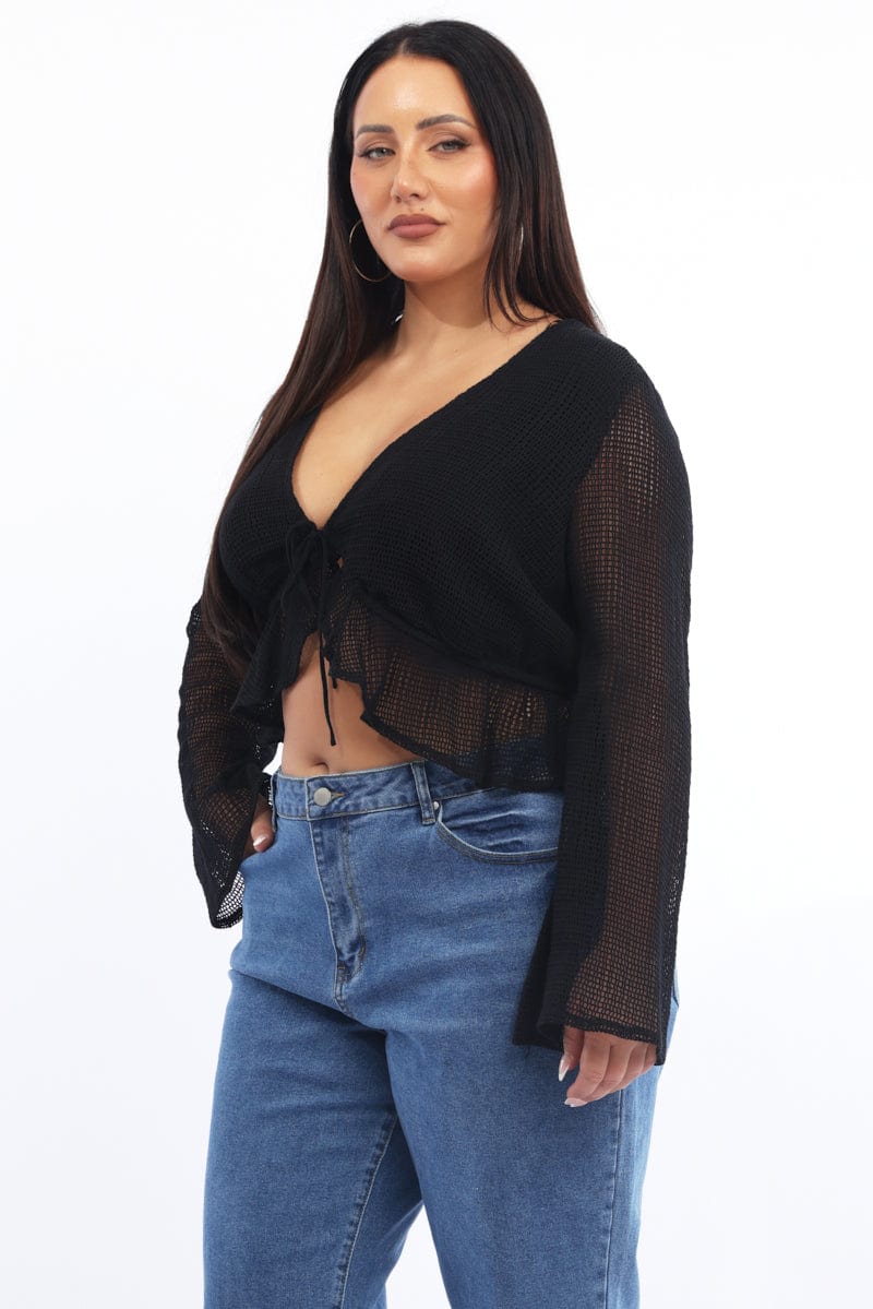 Black Open Knit Look Tie Bolero Jacket