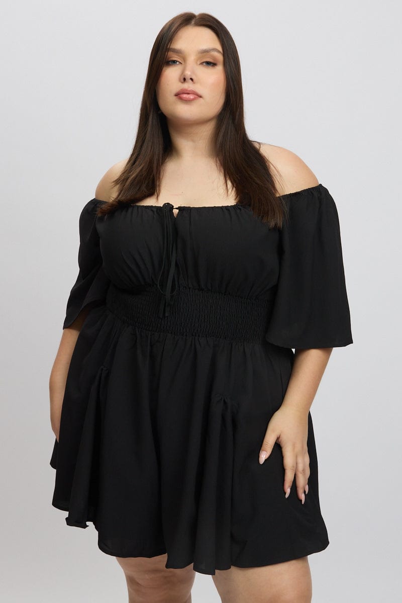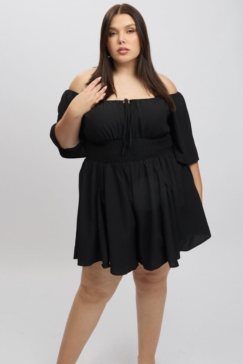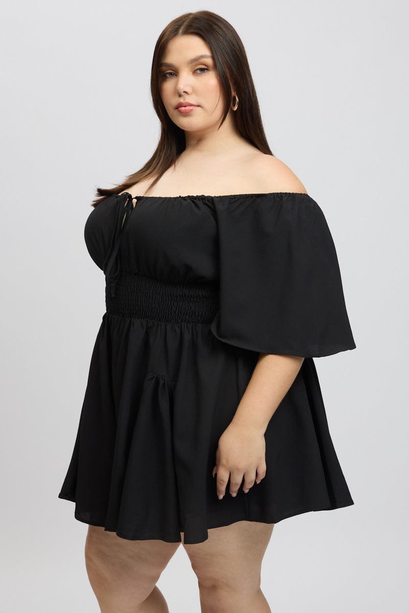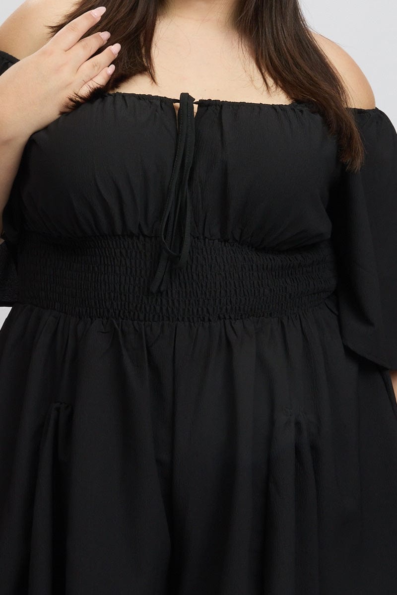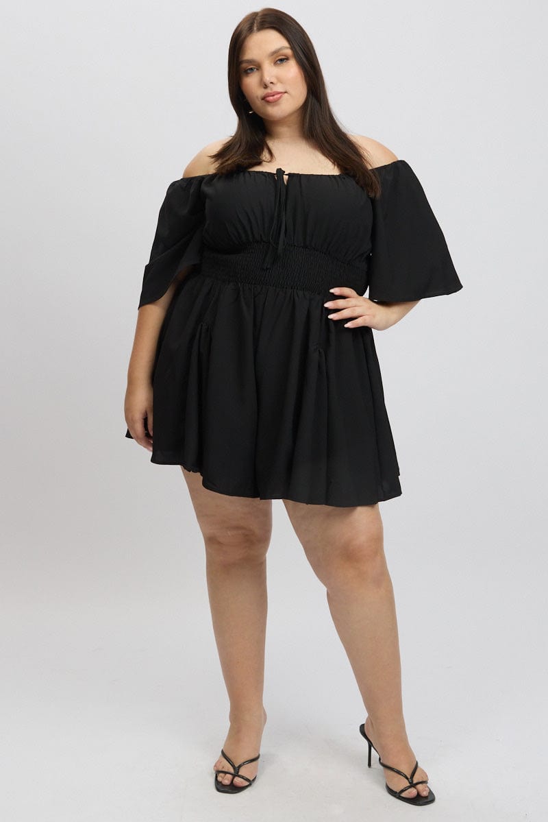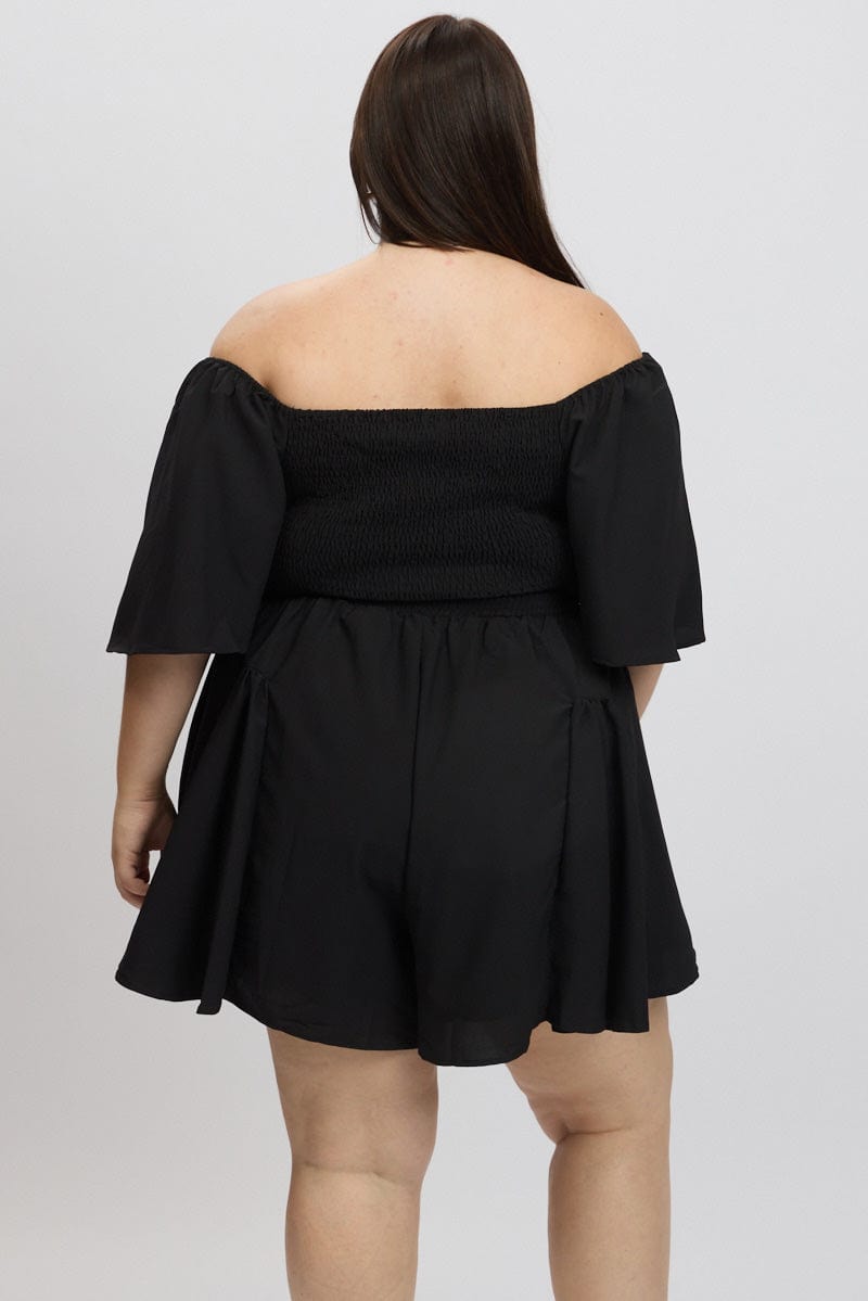 Black Ruffle Playsuit Short Sleeve Textured Poly