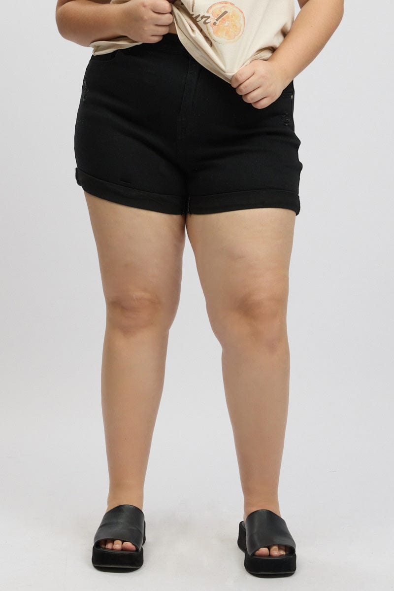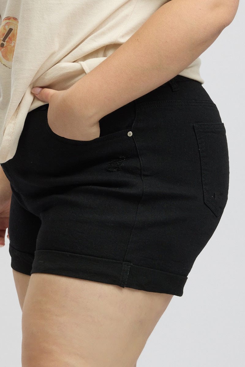 Black Skinny Shorts High Rise Stretched