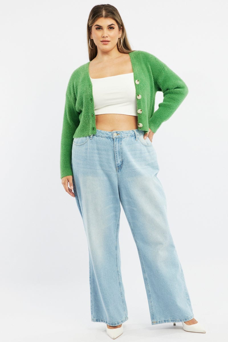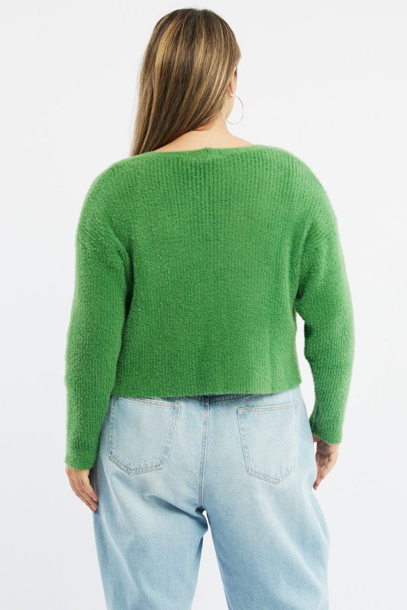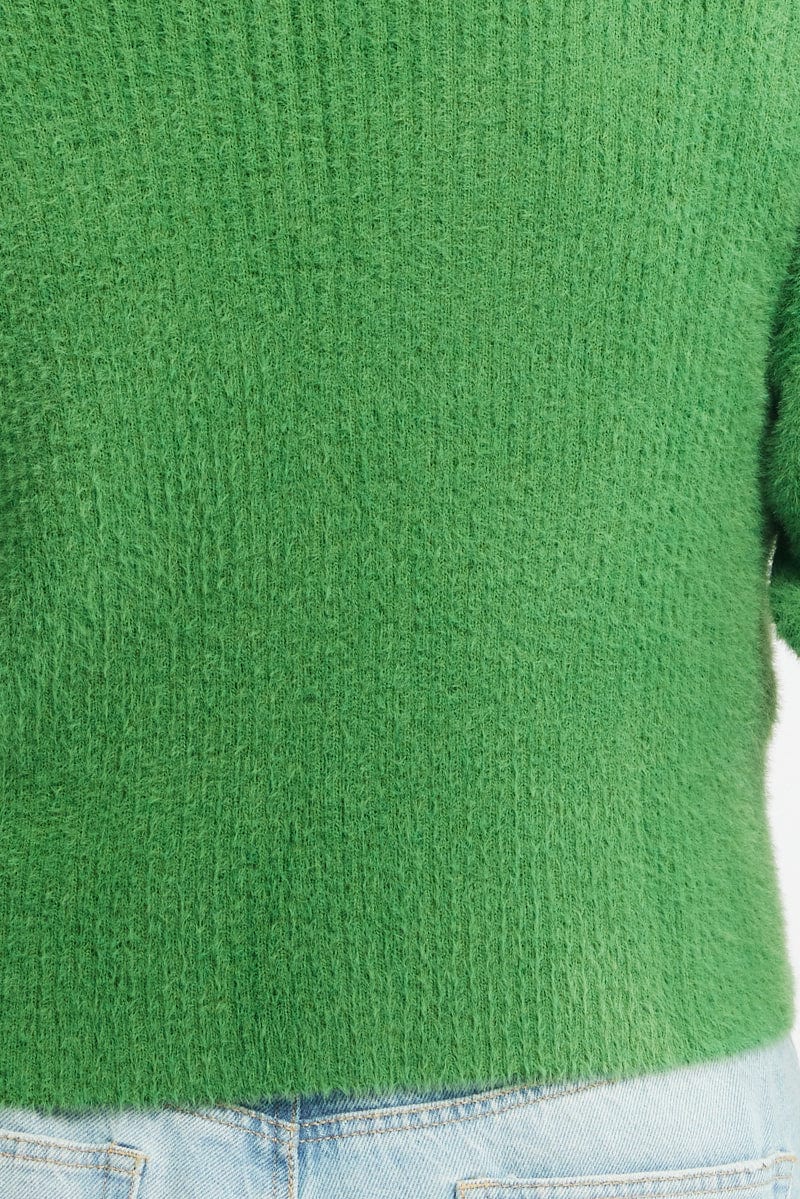 Green Cardigan Long Sleeve Fluffy Semi Crop Knit