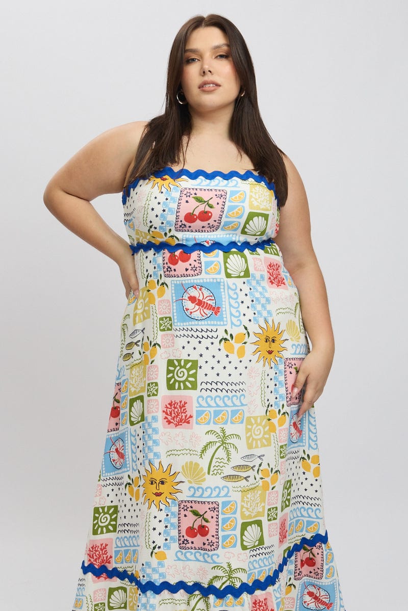 Multi Abstract Maxi Dress Sleeveless Ric Rac