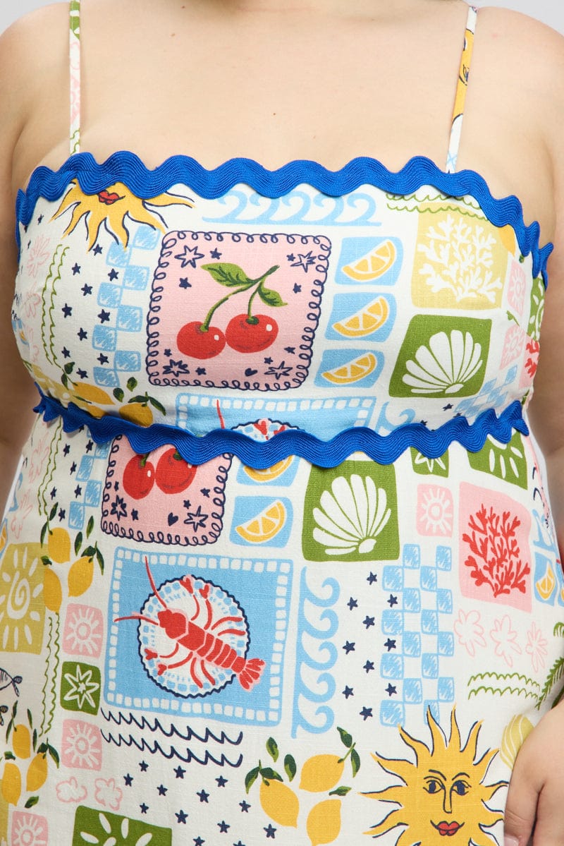 - Ric Rac Trim and Hem, Shirred Back, Back Zipper, Tiered