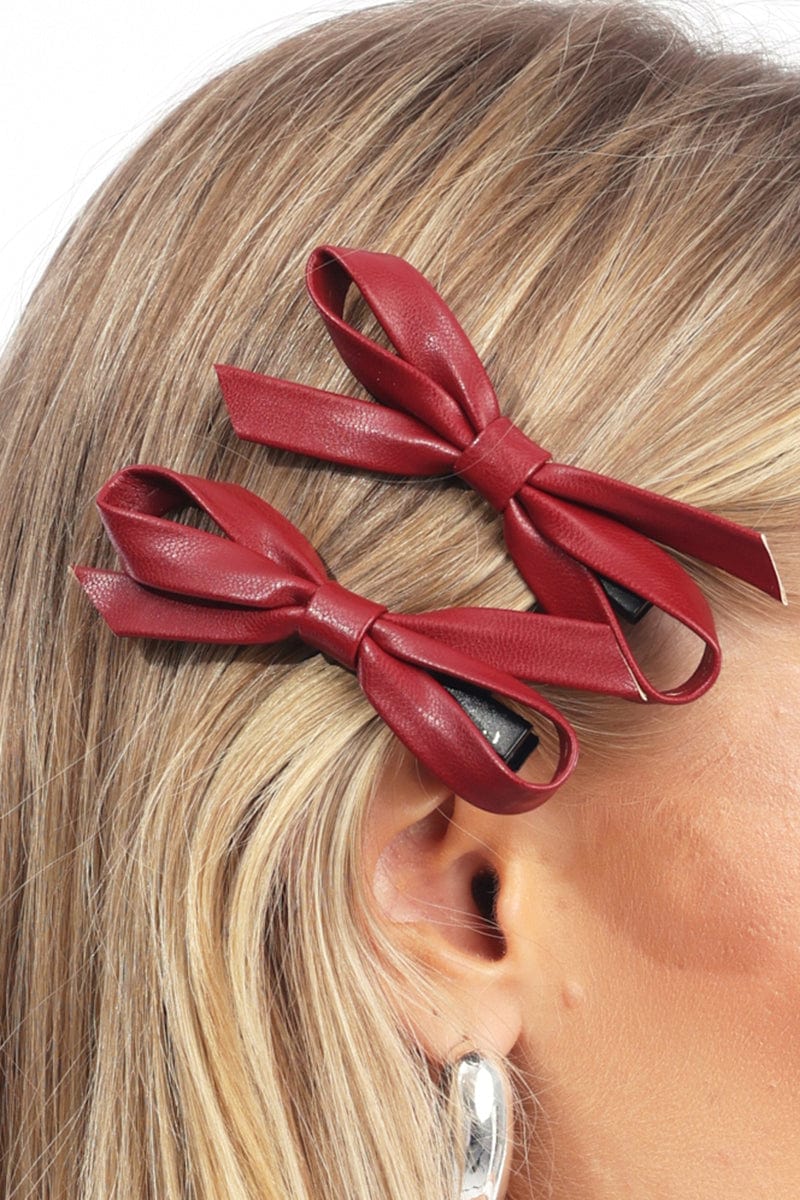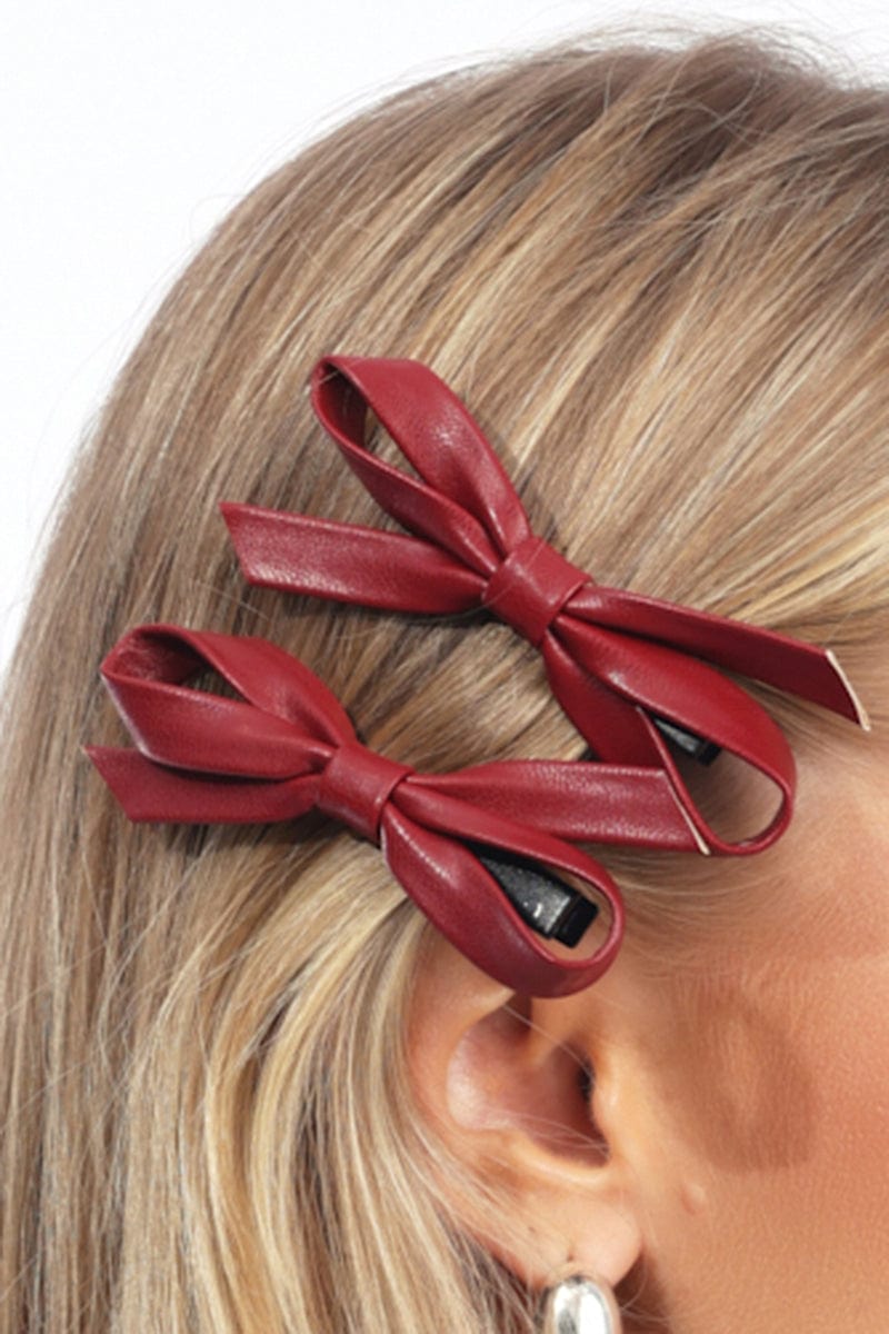 Red 2 Pack Pu Bow Hair Clips