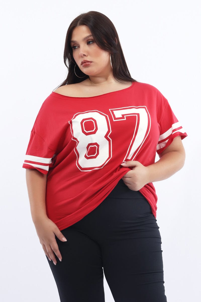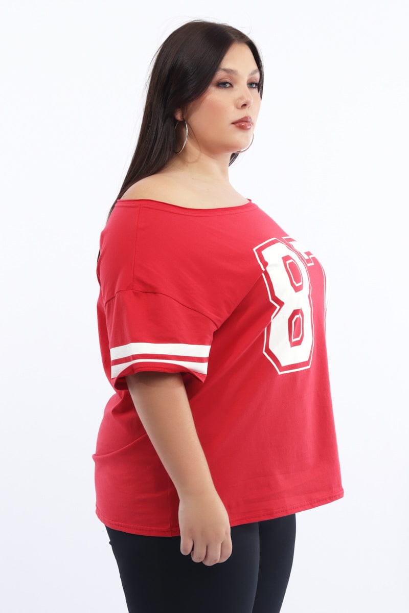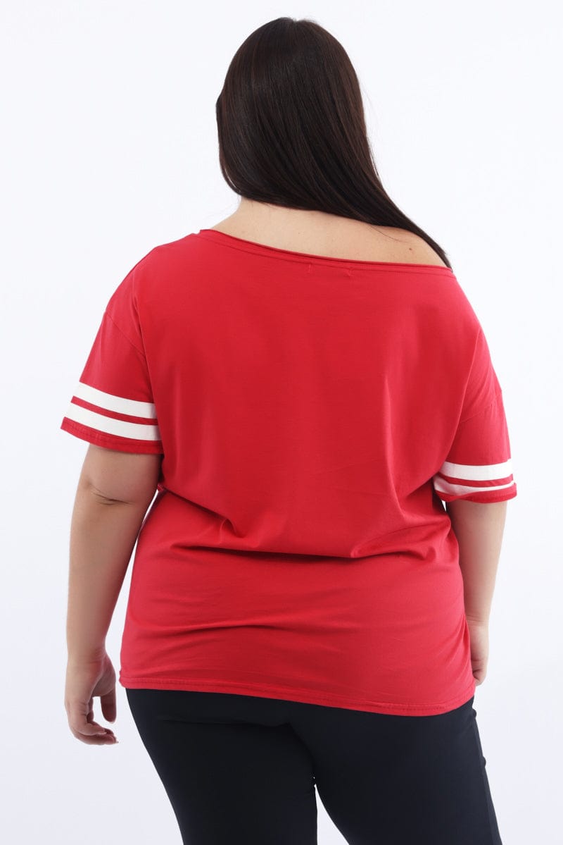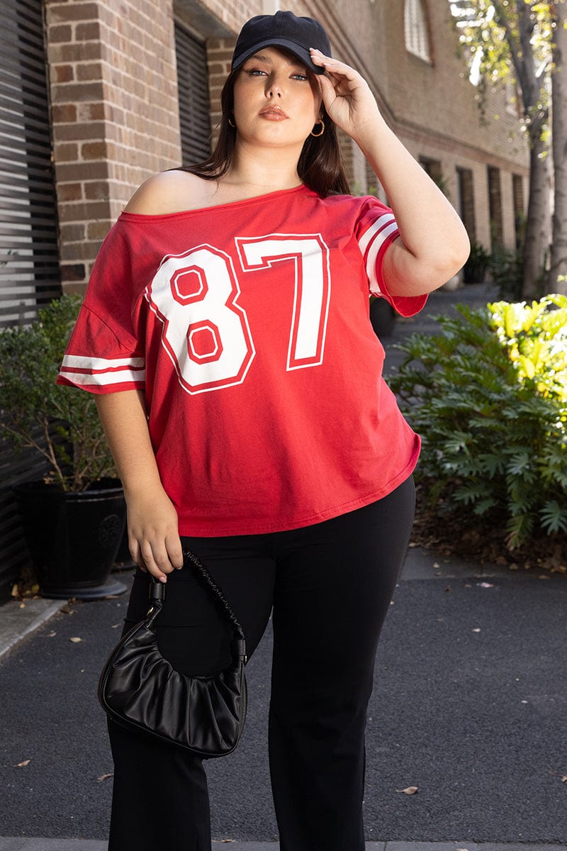 Red Graphic T Shirt One Shoulder Short Sleeve
