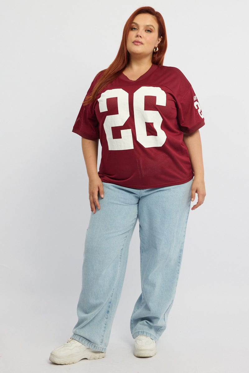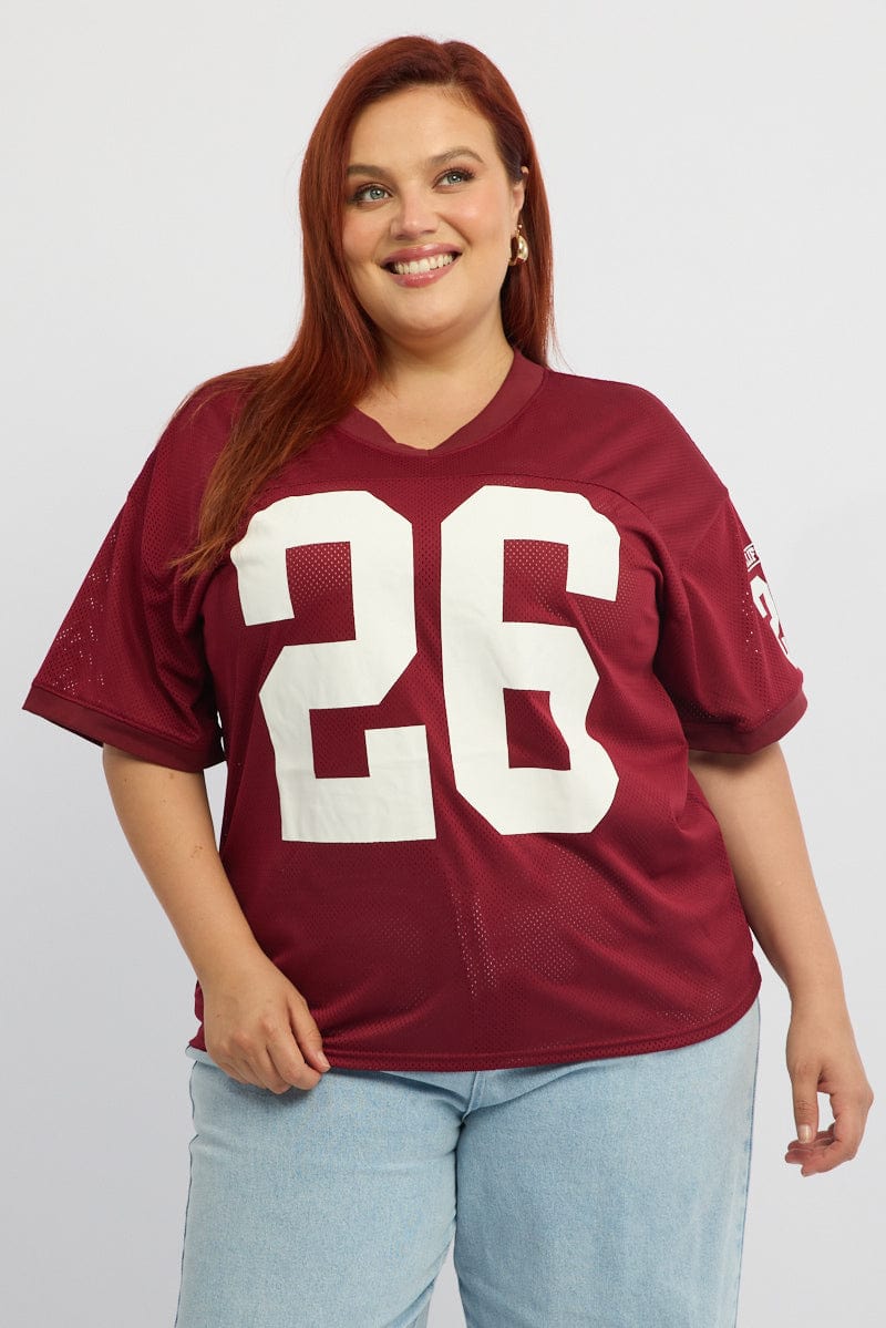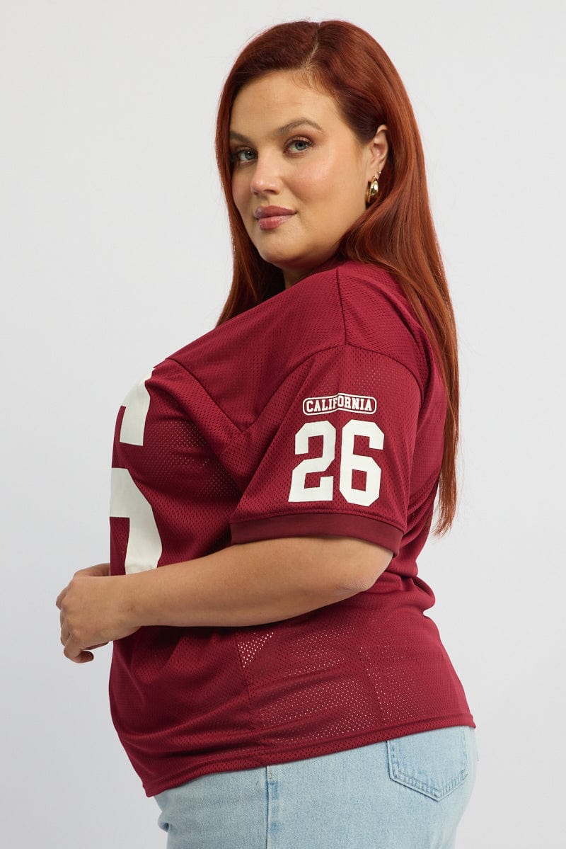 Red Graphic T-shirt Short Sleeve Collared Neck