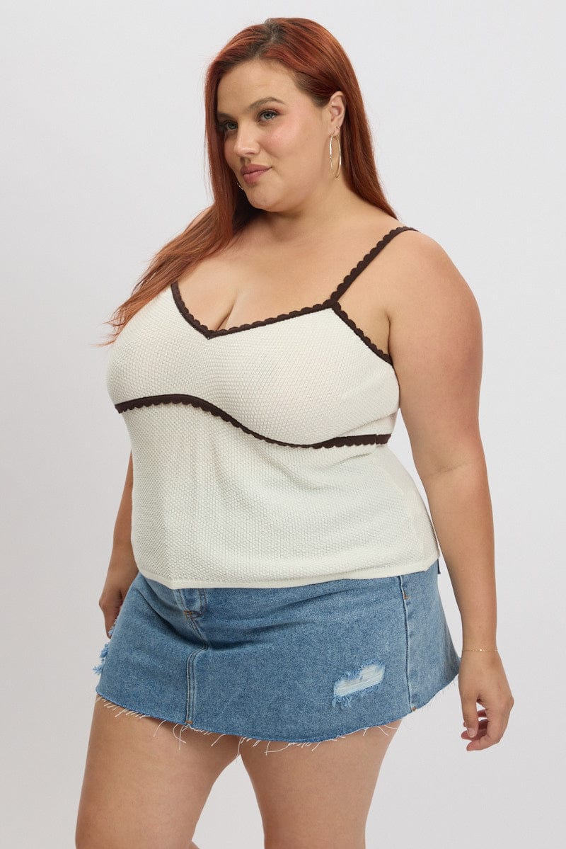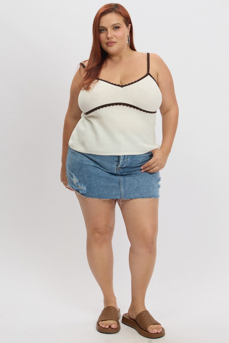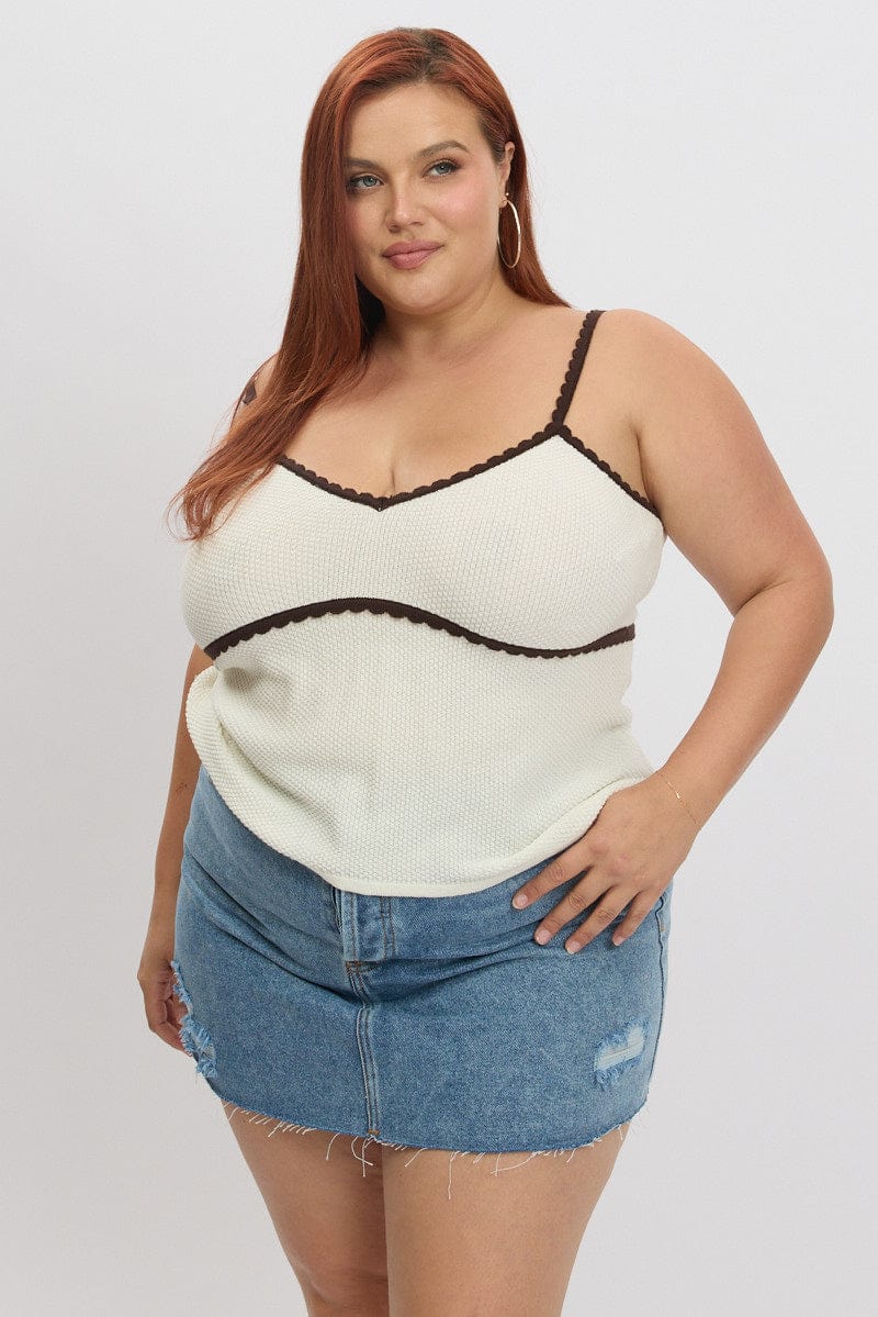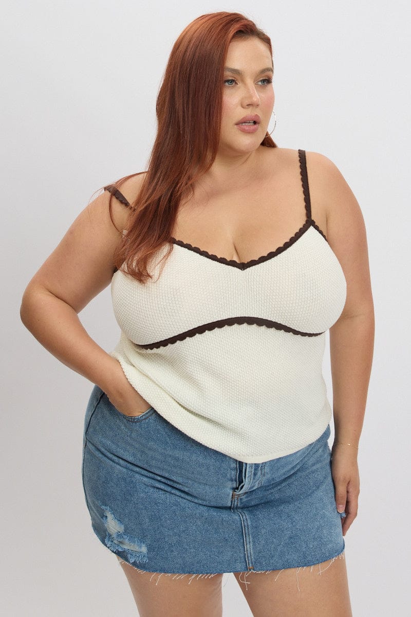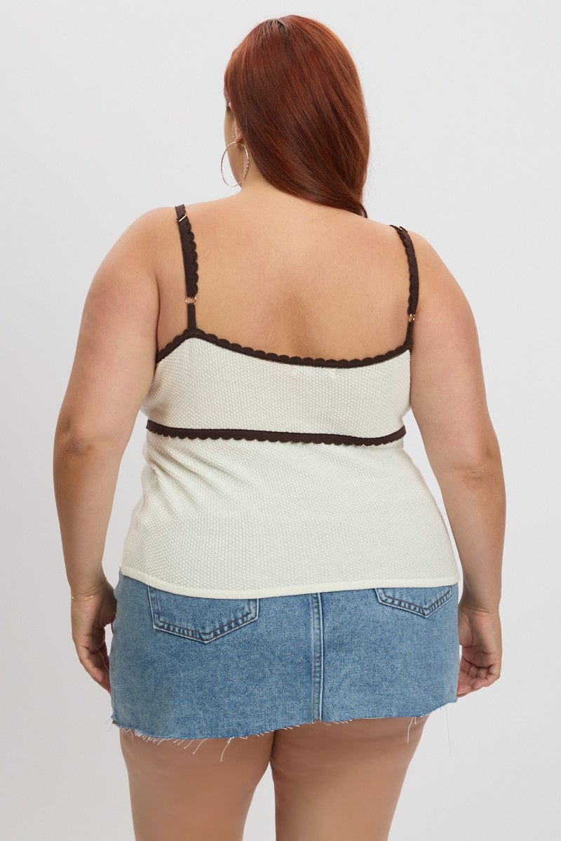 - Model wears Size Contrast Scallop Trim, Adjustable Straps