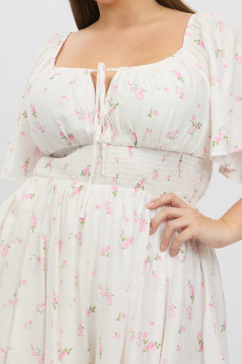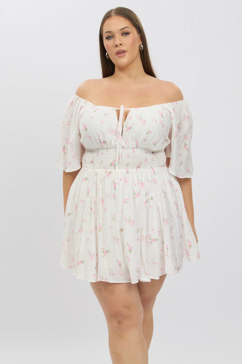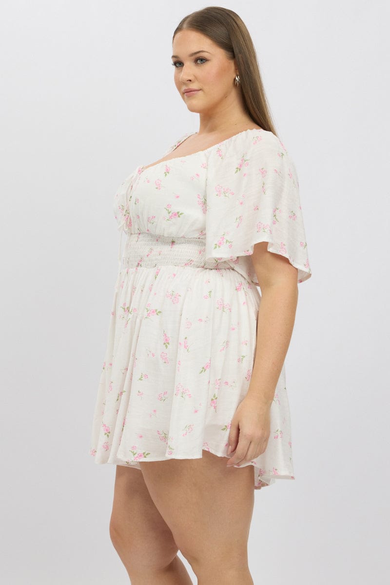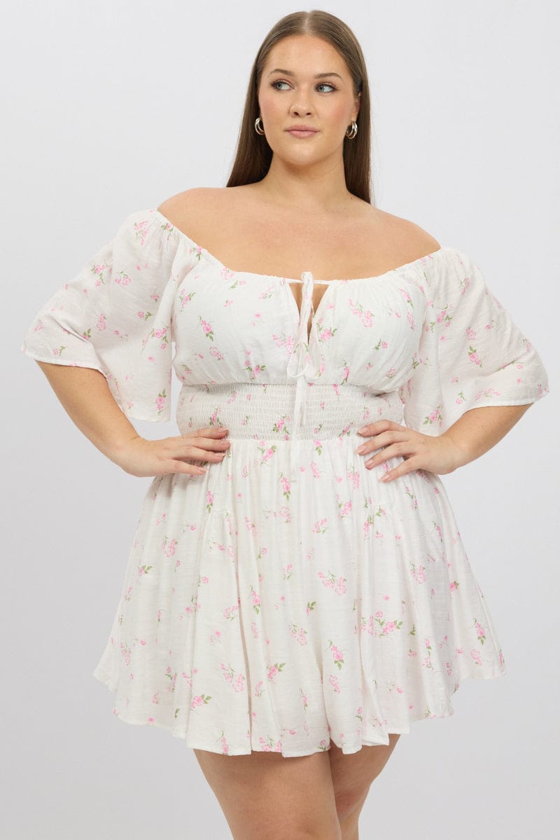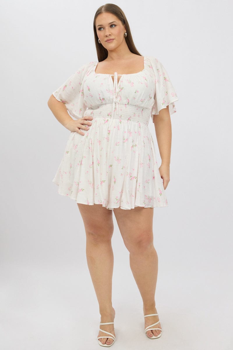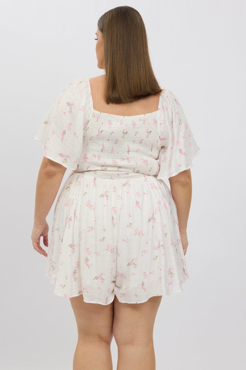 - Shorts Lining, Shirred Waist and Back, Ruched Bust, Front Ribbon Tie