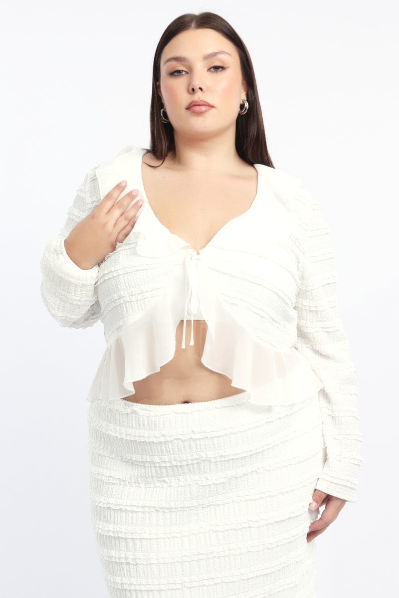 - Textured, Ruffle Trim, Tie-Up Front, Lined
