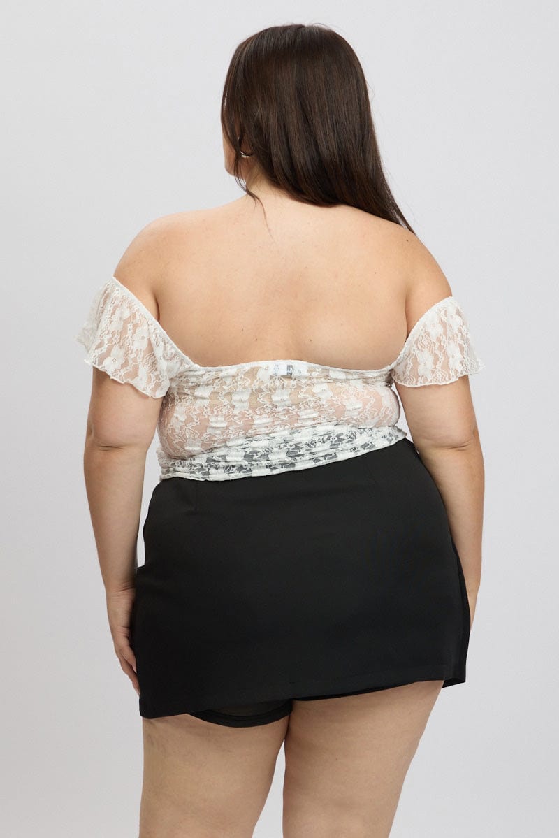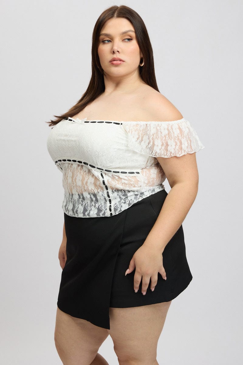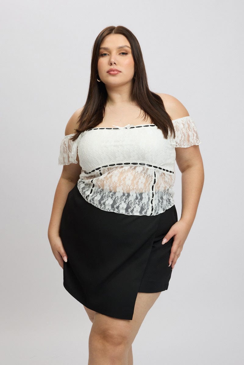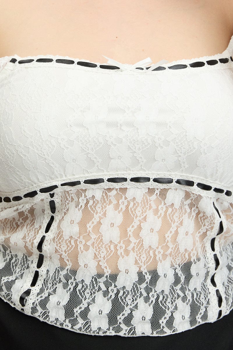 - Contrast Stitch, Lace Overlay, Front Bow Detail, Bust Lining
