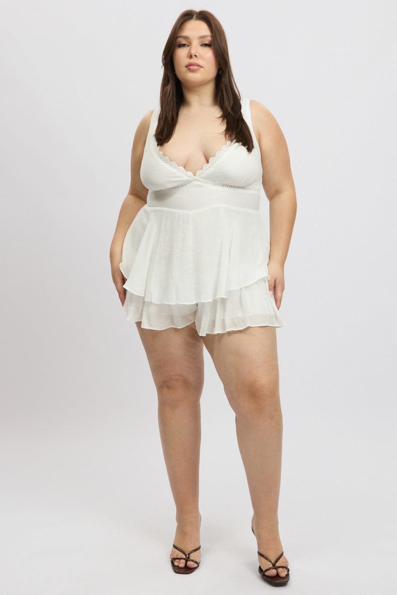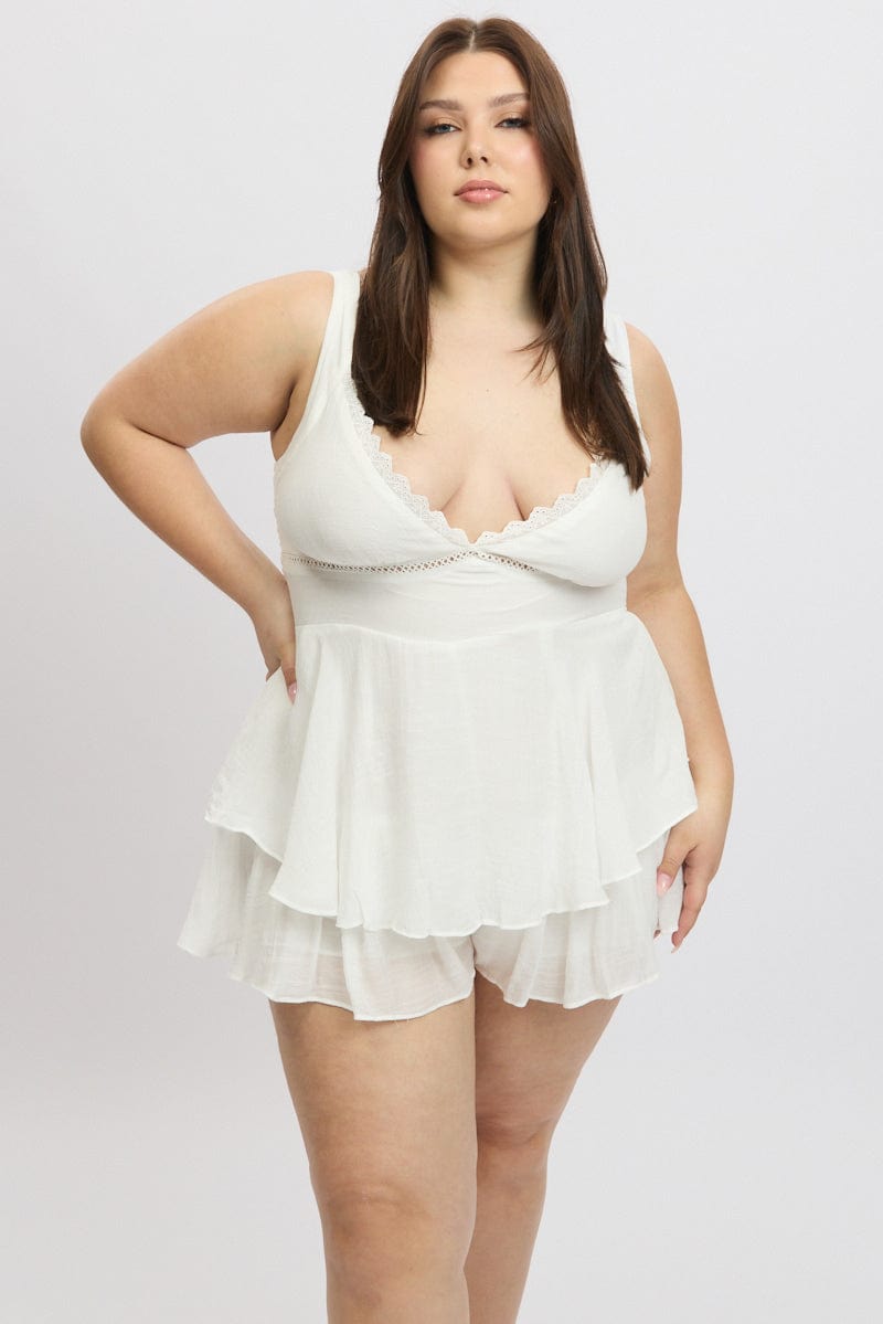 - Shorts Lining, Shirred Back, Crochet Trim, Textured