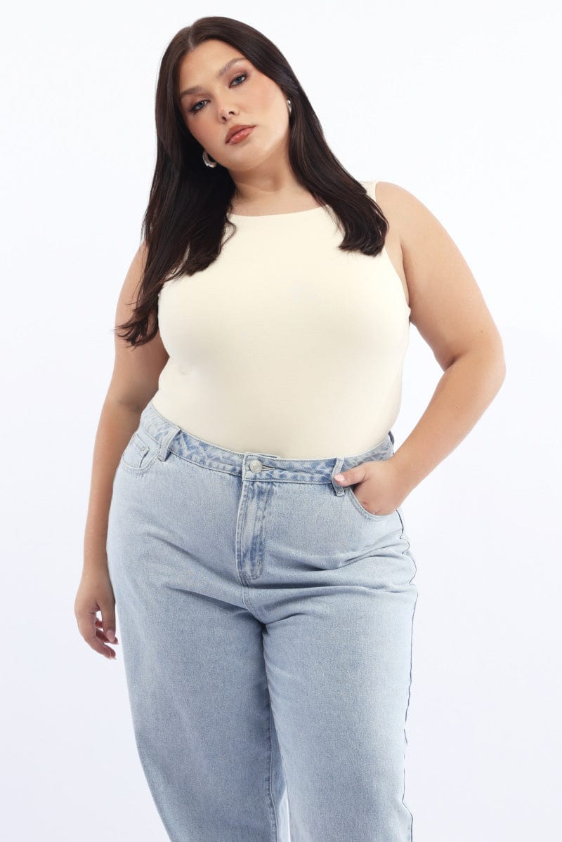 Yellow Bodysuit Sleeveless Boat Neck Modal