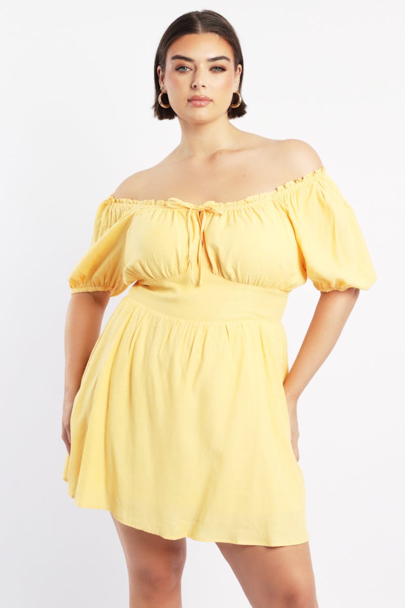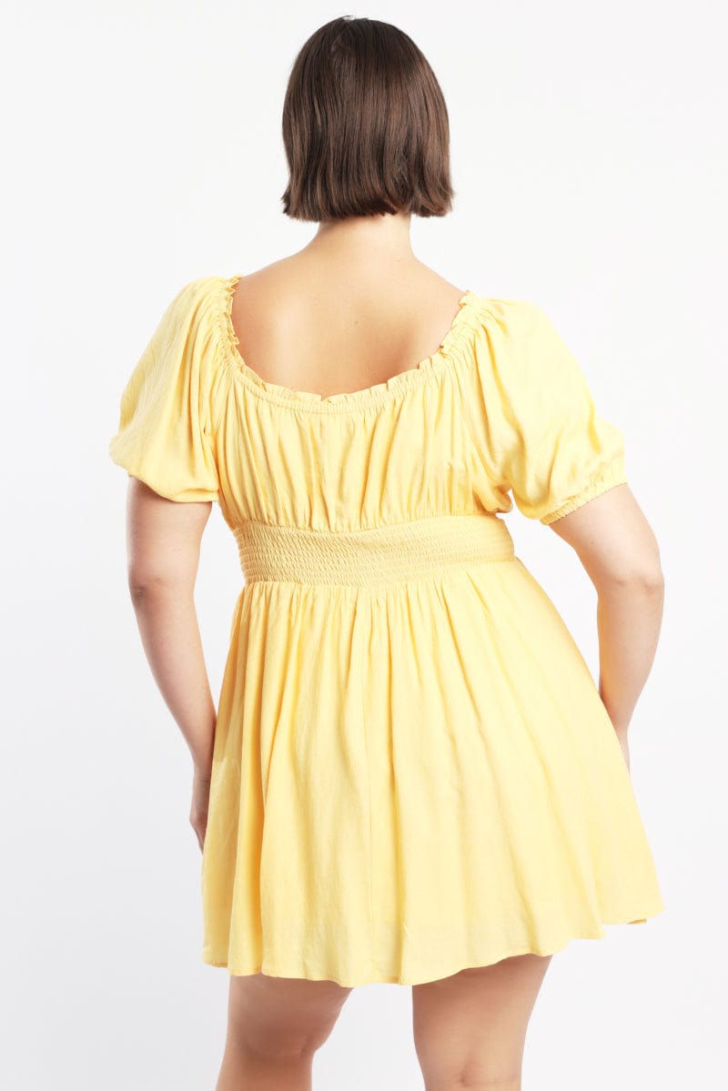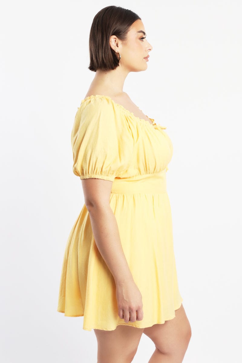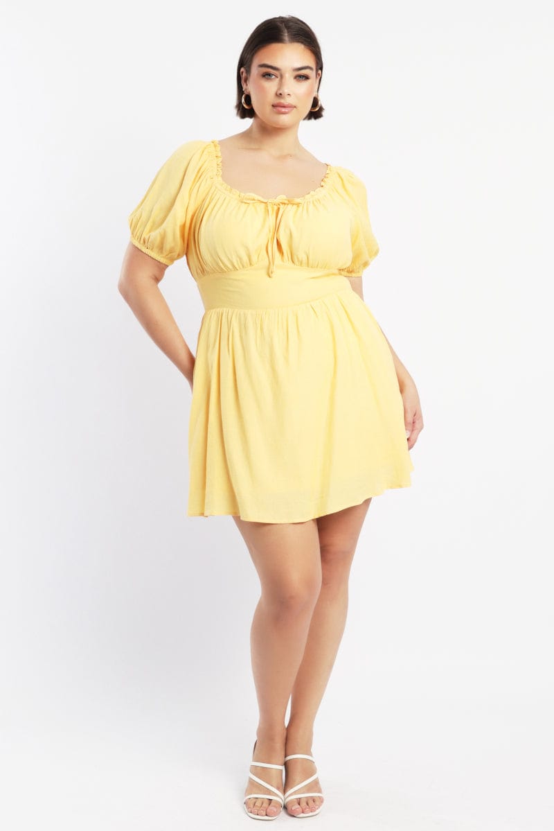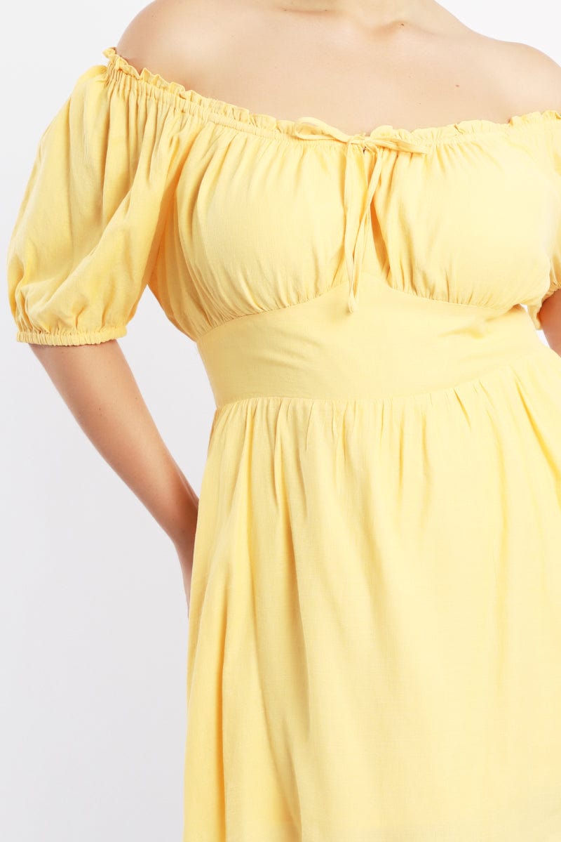 - Corset-Look Bodice, Front Ribbon Tie, Puffed Sleeves, Lined