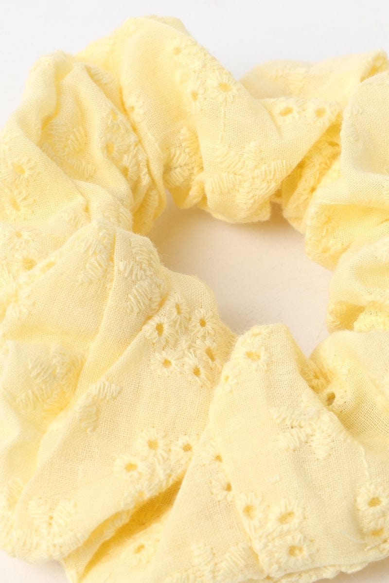 Yellow Eyelet Scrunchies